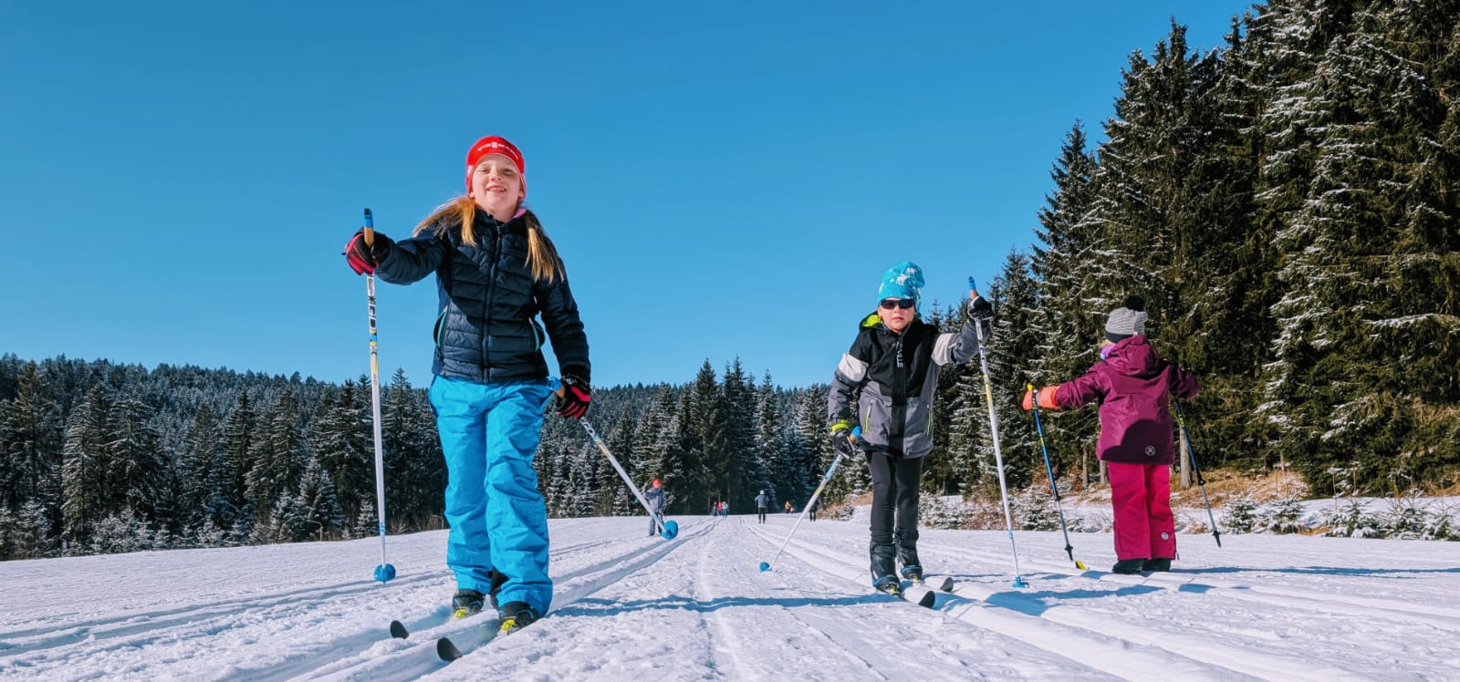 vor dem Frühstück starteten die Sportlerinnen und Sportler mit Frühsport, bevor es im Aufenthaltsraum mit einem speziellen „Sockentraining“ für Koordination und Gleichgewicht weiterging. Danach ging es für die Langläufer in die Loipen und für die Skispringer an die Schanze. Auch am Nachmittag standen vielseitige Trainingseinheiten auf dem Programm, darunter eine besonders anspruchsvolle Abfahrt in Mühlleithen – mit schmalen Langlaufskiern eine echte Herausforderung, die die Kinder mit Bravour meisterten.